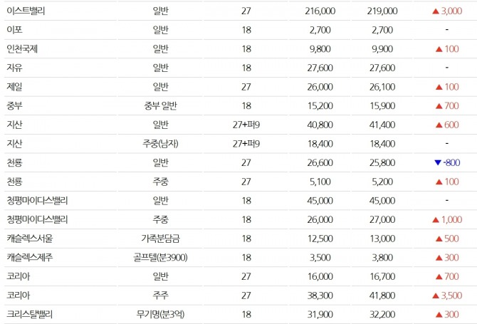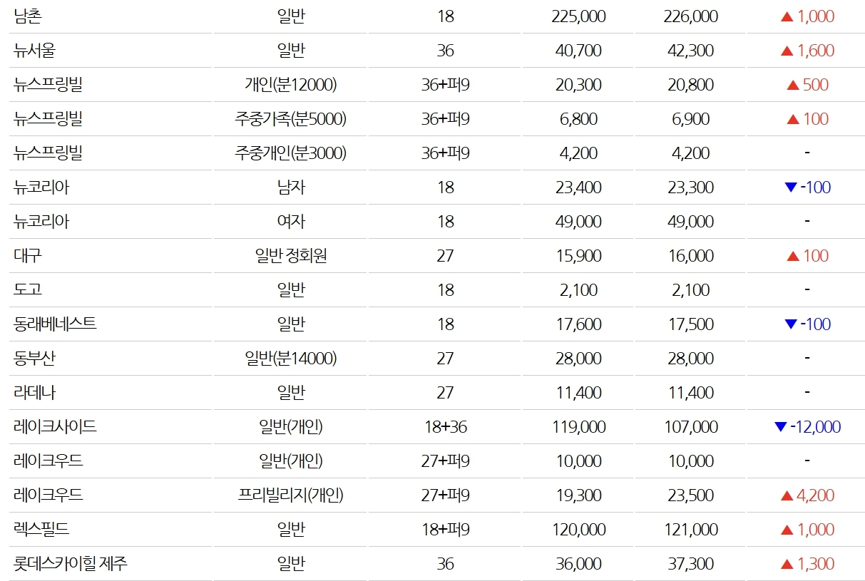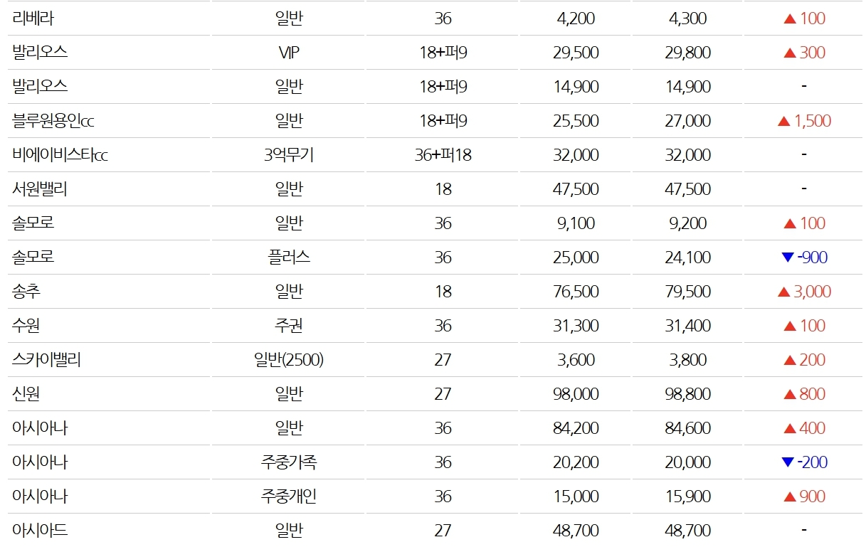 10.송추(18홀) 7억9500만원(3000만원↑) ※전주대비 ↑(상승), ↓(하락)