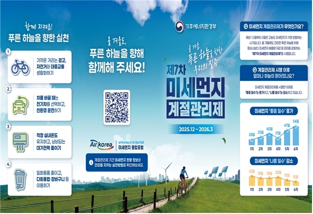 고나단 대기환경관리단장은 “겨울철에는 대기 정체 등으로 고농도 미세먼지가 발생하기 쉬운 만큼, 시민 여러분의 작은 실천이 무엇보다 중요하다”며 “대중교통 이용하기, 불법소각 안하기, 일회용품 대신 다회용컵, 장바구니 이용하기 등 생활 속 실천에 적극 동참해 주시길 바란다”고 강조했다.