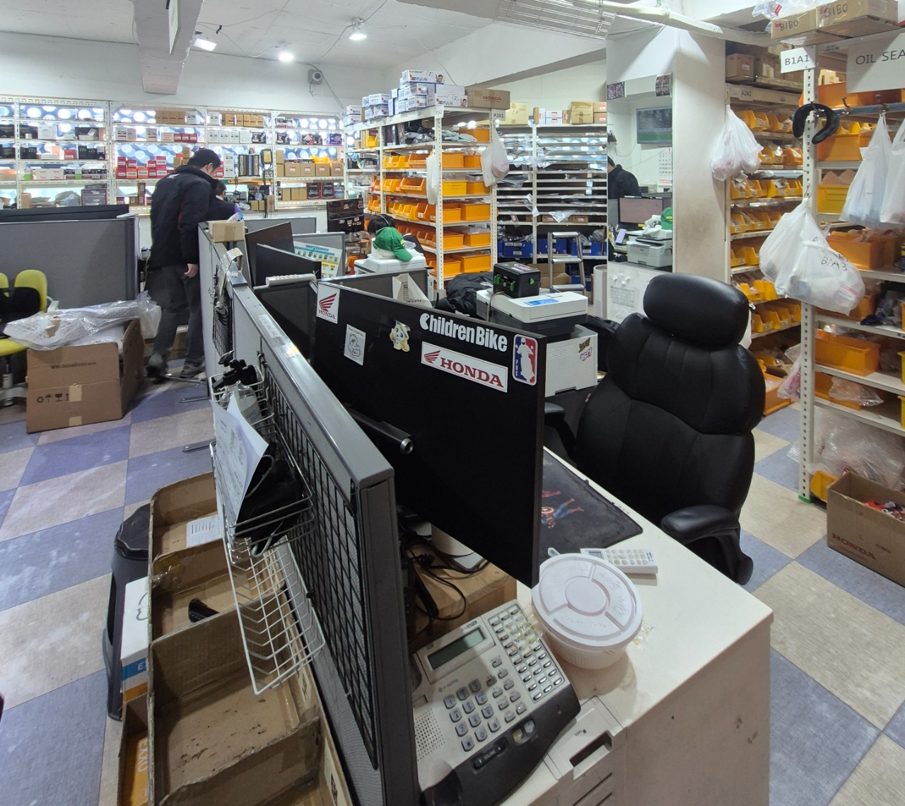 이미지 확대보기한국 오토바이(모터사이클) 산업계에서 '판매의 신'으로 통하는 노재우 혼다모터사이클 강북 딜러 회장의 말이다. 최근 서울 동대문구 왕산로 금은빌딩 사무실에서 만난 노 회장은 전국 고객사들에게 보낼 부품을 정리하느라 여념이 없었다. 혼다코리아 본사가 딜러 계약 해지를 통보하면서 재고 부품과 제품 처분 시간을 주지 않았기에 생긴 일이다. 전국 5000여 곳의 판매점들이 보내오는 부품 주문서를 보고 일일이 포장해서 보내고 있다. 6층짜리 건물 중 3~5층 부품실과 창고에는 타이어 등 각종 부품이 빼곡이 들어차 있었다. 약 20억 원어치라고 했다.