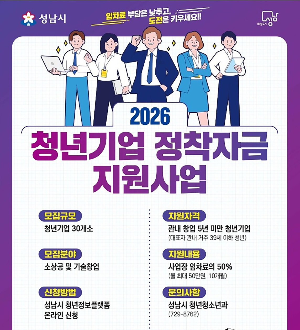임차료 지원 신청은 온라인 ‘성남청년정보플랫폼’을 통해 접수하며, 사업자등록증과 임대차계약서 등 관련 서류를 제출해야 한다.