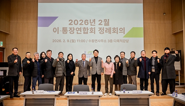 이미지 확대보기남양주시의회는 조성대 의장이 지난 9일 수동면사무소 다목적강당에서 열린 ‘2026년 남양주시 이·통장연합회 2월 정례회의’에 참석해 이같이 밝혔다고 전했다. 이번 회의는 조 의장과 관내 16개 읍면동 이·통장 협의회장들이 모인 가운데 시정 안내와 자체 안건 논의 등 지역 현안 공유를 목적으로 진행됐다.