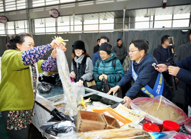 강 시장은 점포를 돌며 온누리상품권으로 한과 등 제수용품을 구입했다. 명절을 앞둔 장바구니 물가를 점검하고 최근 매출 상황과 경기 흐름에 대한 의견을 들었다. 상인들은 명절 대목임에도 소비 심리가 예전 같지 않다며 현장의 어려움을 전달했다.