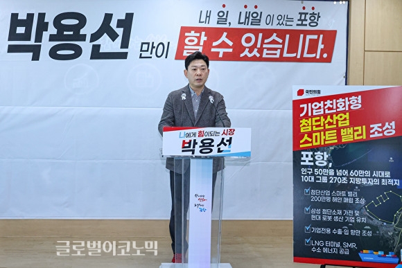 이미지 확대보기박 예정자는 지난 12일 포항시청 브리핑룸에서 4차 공약을 통해 “10대 그룹이 향후 5년간 270조원 규모의 지방 투자를 약속한 상황에서 기업이 즉시 투자할 수 있는 여건을 갖춘 도시가 경쟁력을 갖게 될 것”이라며 포항을 첨단산업 투자 거점으로 육성하겠다고 13일 밝혔다.