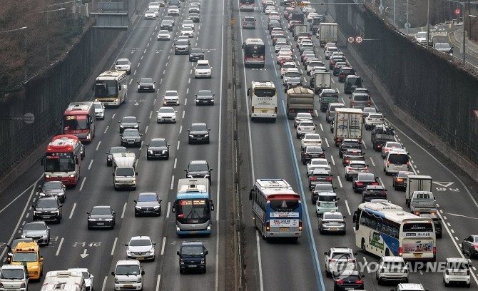 이미지 확대보기한국도로공사에 따르면 이날 오후 5시 기준 서울 요금소에서 전국 주요 도시까지 걸리는 예상 시간은 부산 4시간 30분, 울산 4시간 10분, 목포 3시간 40분, 대구 3시간 30분, 광주 3시간 20분, 강릉 2시간 40분, 대전 1시간 50분이다.