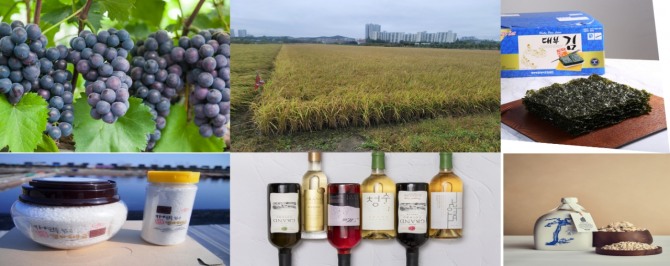 대부 포도·참드림 쌀·그랑꼬또 와인·옥로주·대부 김·깸파리 소금·노적봉 별빛츄리