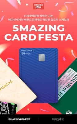 이미지 확대보기5메이징 카드 페스타는 업계 최다인 5개 카드사와 함께하는 대표적인 사은행사로, 이번 행사에서는 봄 시즌을 앞두고 패션, 명품은 물론, 워치·주얼리, 리빙, 식품까지 전 카테고리에서 혜택을 제공한다.
