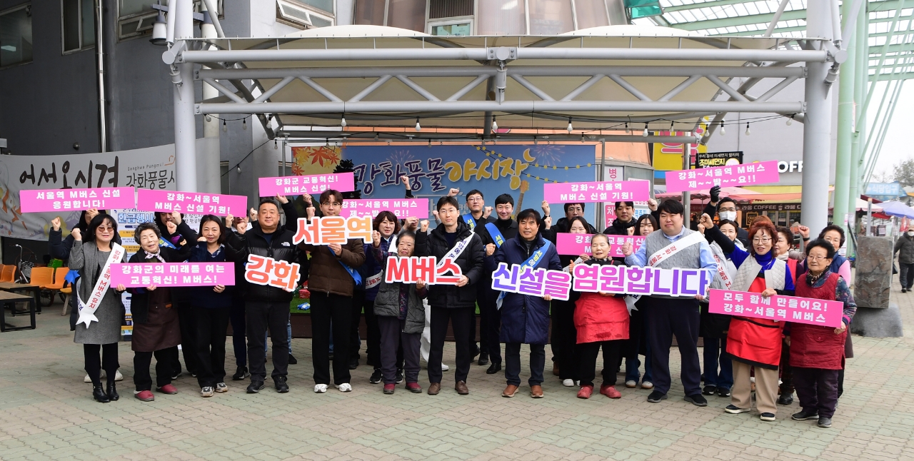 한편 강화군은 이달 초부터 서울역~강화 M버스 노선 유치를 위한 대대적인 서명운동을 전개하고 있다. 서명부는 국토교통부 대도시권광역교통위원회에 전달해 군민들의 강력한 유치 의지와 노선 신설 필요성을 입증하는 핵심 자료로 활용할 예정이다.