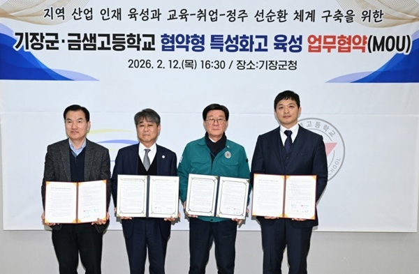 이날 협약식에는 정종복 기장군수와 오상흔 금샘고등학교 교장을 비롯해 금샘고등학교 학부모회, 기장군 소재 기업인 ㈜효성전기와 ㈜SCV 관계자 등이 참석했다. 기장군과 금샘고등학교는 상호 신뢰를 바탕으로 2026년 3월부터 5년간 지역 기반 산업 인재 육성을 위해 실질적인 협력을 추진하기로 뜻을 모았다.