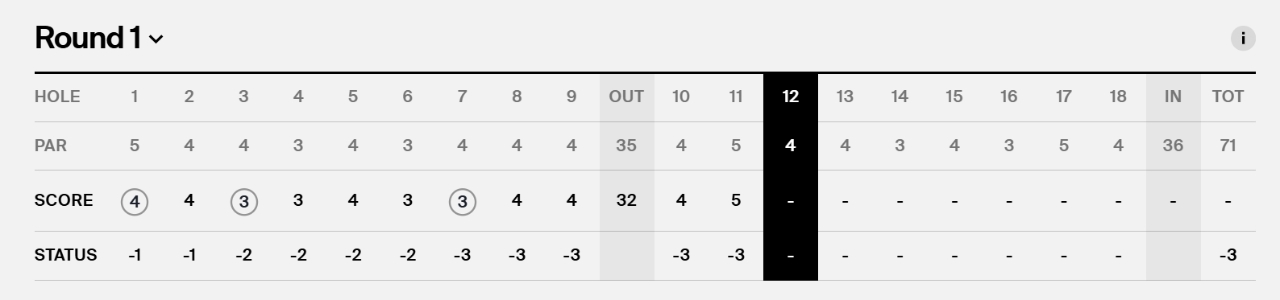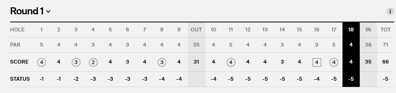 라이는 16번홀까지 이글 1개, 버디 6개, 보기 2개를 기록했다.