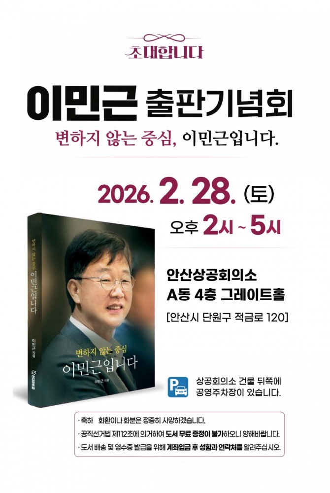 행사는 안산시민 등 관심 있는 사람이라면 누구나 참석할 수 있으며 현장에서는 선거법 준수를 위해 도서 무료 배부 없이 정가 판매 및 공식 식순 위주로 운영될 예정이다.