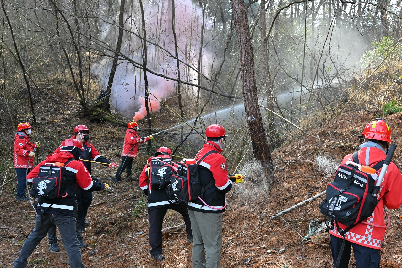 이미지 확대보기서구는 지난 26일 오전 서창동 학산사 일원에서 산불 진화 모의훈련을 실시했다고 27일 밝혔다.