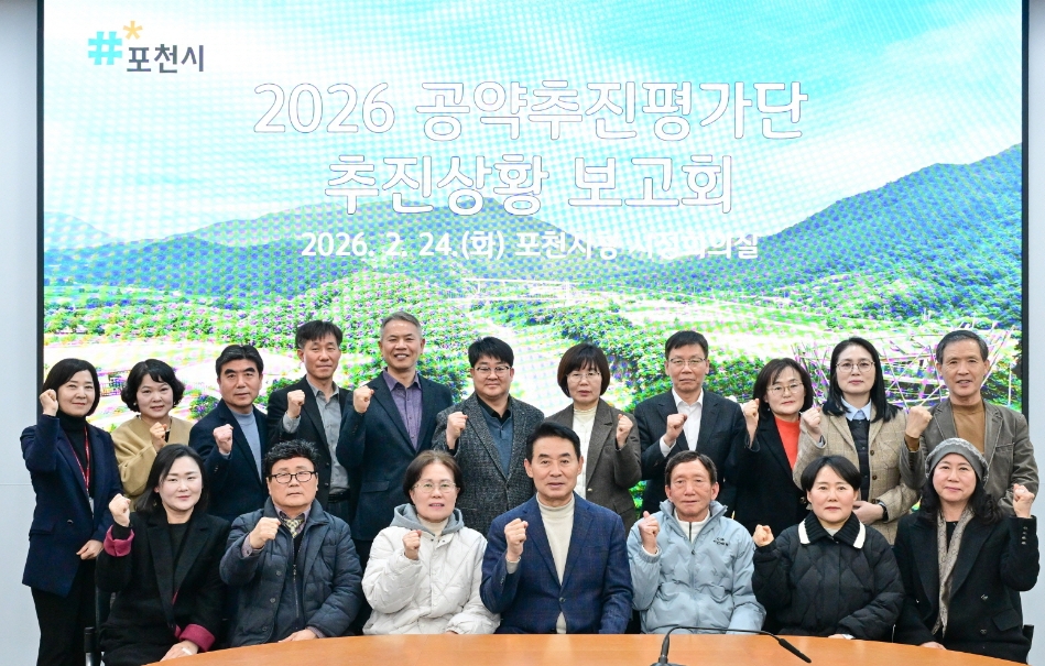 이미지 확대보기시는 지난 24일 2026년 공약추진평가단 추진상황 보고회를 열고 백영현 포천시장을 비롯한 간부 공무원과 공약추진평가단 위원들이 주요 공약사업의 추진 실적과 향후 계획을 점검했다.