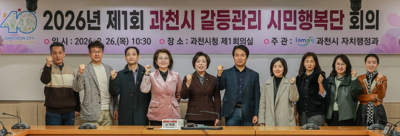 이미지 확대보기시는 지난 26일 갈등관리 시민행복단 회의를 개최하고 지난 1년간의 활동 성과를 점검하는 한편 2026년 과천시 공공갈등관리 종합계획안을 심의했다고 27일 밝혔다.