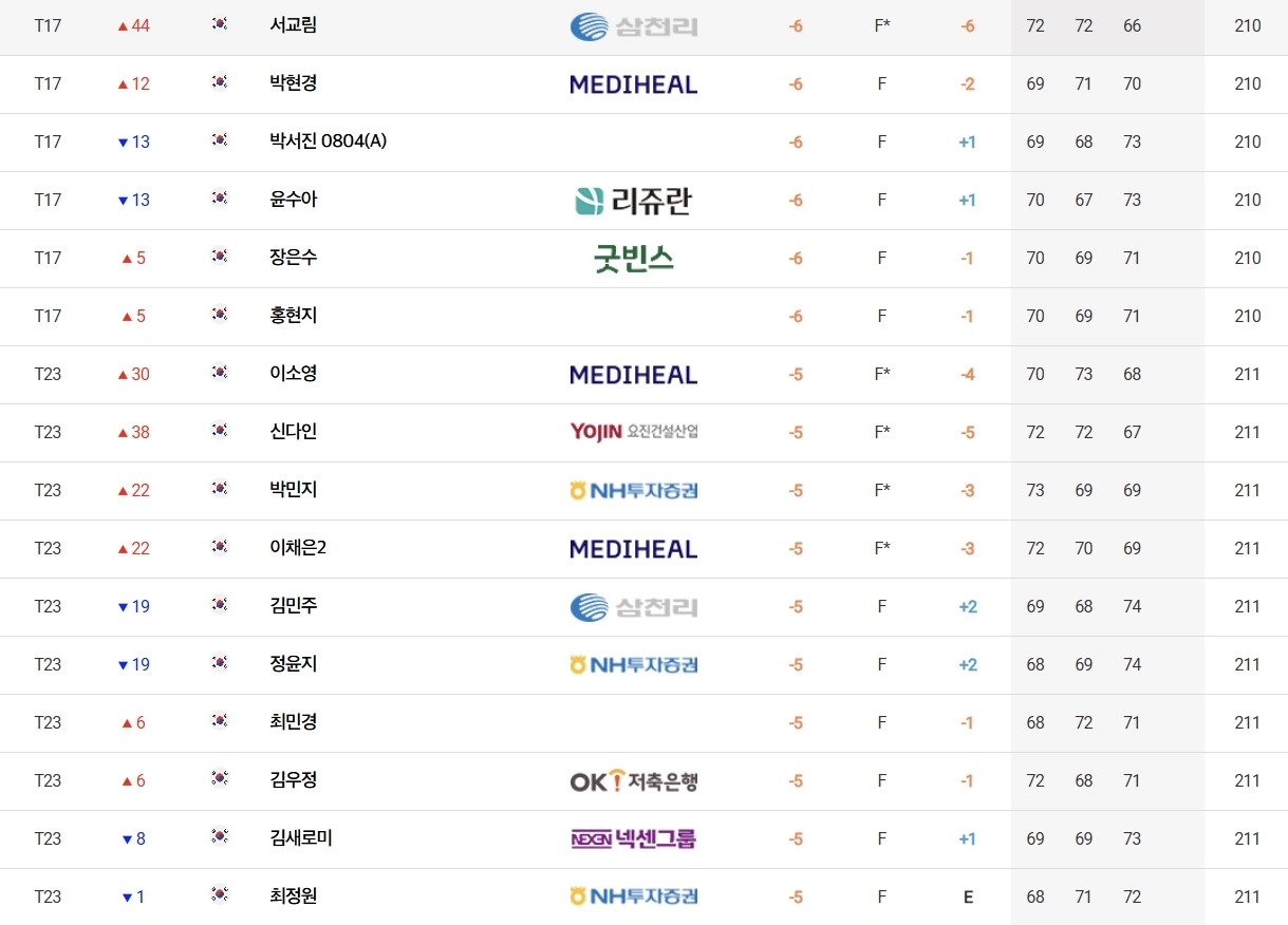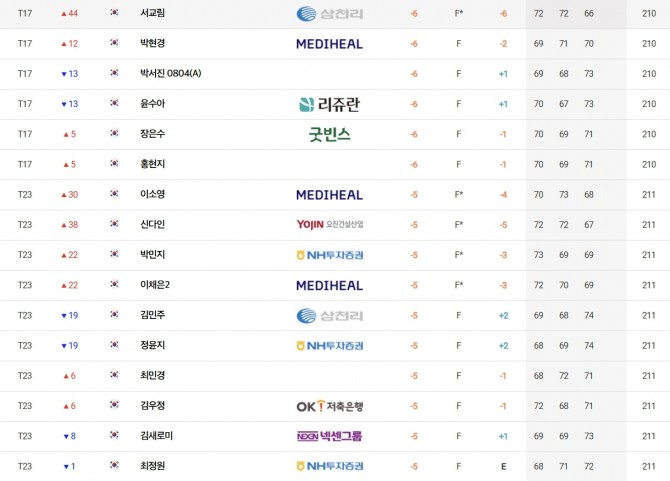 국가대표 오수민(신성고)은 합계 7언더파 209타로 이다연(메디힐), 최가빈(삼천리), 최예본(CALMA)등과 공동 13위에 랭크됐다.