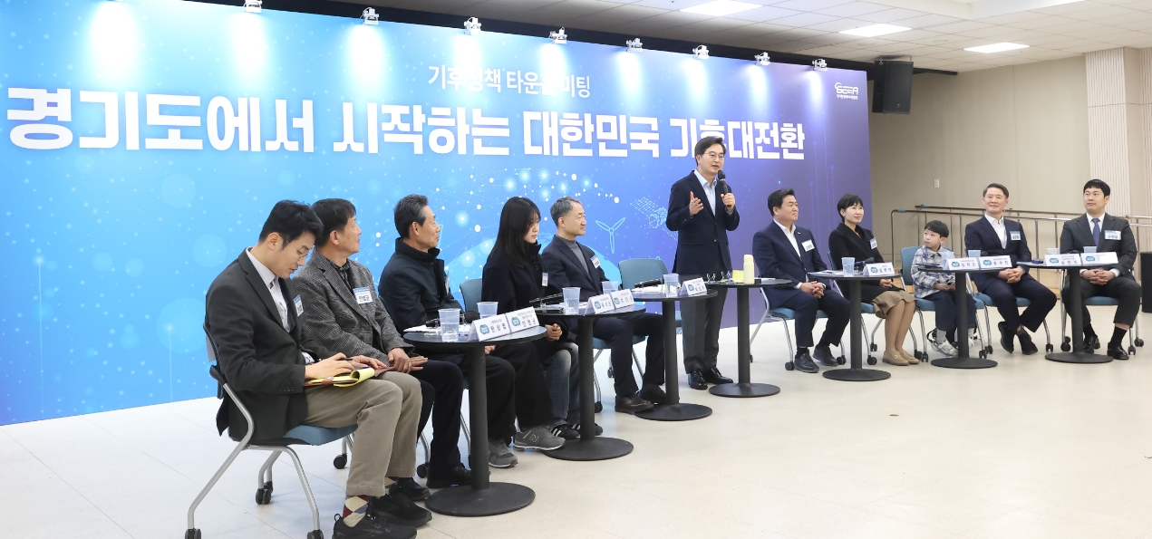 이미지 확대보기김 지사는 16일 시흥시 근로자종합복지관에서 열린 ‘도민과 함께하는 기후정책 타운홀 미팅’에서 지난 4년간 경기도가 국내외적으로 기후정책을 선도해 왔다며 이 같은 정책 방향을 설명했다.