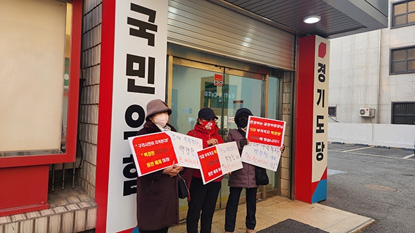 지난 16일 수원 국민의힘 경기도당사를 항의 방문한 구리시 책임당원들. 사진=국민의힘 구리시당