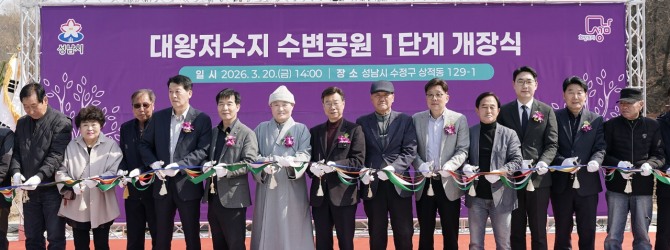 이미지 확대보기시는 신상진 성남시장과 시민 등 150여 명이 참석한 가운데 ‘대왕저수지 수변공원 1단계 개장식’을 개최했다고 20일 밝혔다.