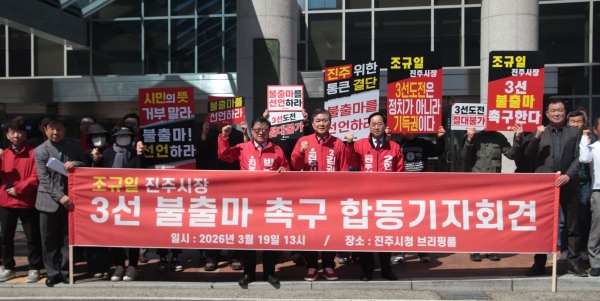 같은 당 김권수·박명균·한경호 진주시장 예비후보는 지난 26일 서울 여의도 국민의힘 중앙당사를 찾아 조규일 진주시장의 공천 배제를 촉구하는 공동건의문을 제출했다.