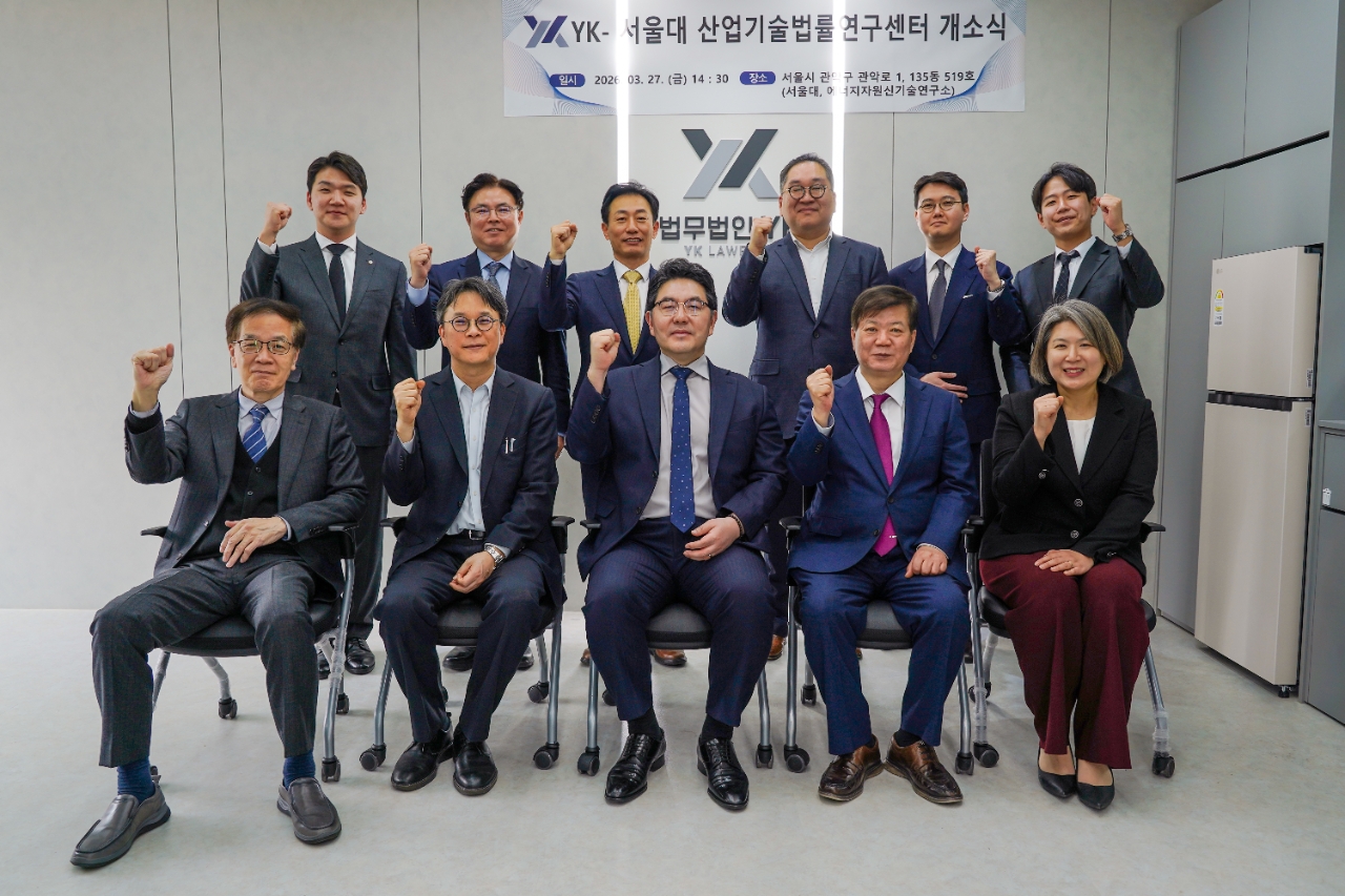 이미지 확대보기법무법인 YK는 지난 27일 서울대학교 135동 에너지자원신기술연구소 내에 ‘서울대 산업기술법률연구센터’ 개소식을 공식 진행했다고 30일 밝혔다. 이번 센터 설립을 통해 YK와 서울대학교는 국가 산업기술 보호와 지식재산(IP) 가치 제고를 위한 본격적인 공동 연구를 추진할 계획이다.