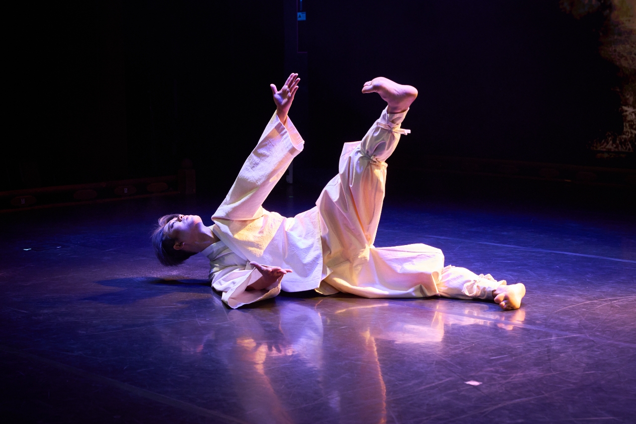 ‘하슬라 정백’(河瑟羅 精魄, 출연: 이동하): 하슬라는 옛 고구려 강릉 땅, 하늘과 바다가 이어지고, 순수하고 정제된 사람들, 동해의 파도와 태백산의 산등성을 넘나든 삶의 결이 스며 있다. 짊어지고, 이고 삶을 이어온 영혼들의 정한이 쌓인 풍경이다. 혼백을 부르는 정선아리랑에 맞추어, 하슬라인들의 삶이 스미고 순환의 여정을 보허자 춤으로 엮어낸다. 그 움직임은 바람과 물결의 호흡을 닮아, 인간과 자연, 시간과 기억이 하나로 화해하는 서정적 장면을 빚어낸다.