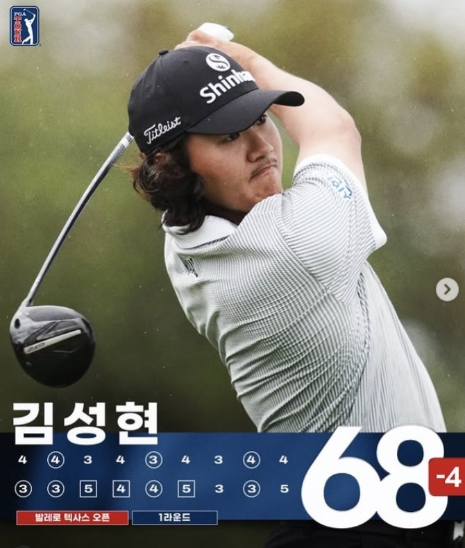김성현은 이날 버디 7개, 보기 3개로 4언더파 68타를 쳐 공동 13위에 올랐다. 공동 선두와 2타 차다.