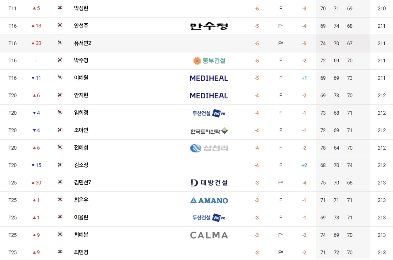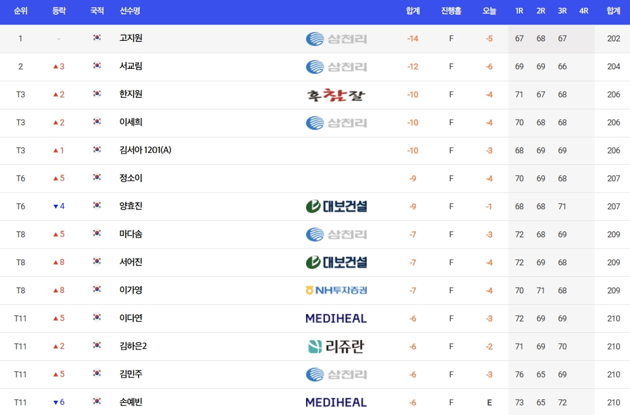 [더 시에나 3R]1.고지우 -14, 2.서교림 -12, 3.한지원-이세희-김서아 -10, 11.박성현 -6, 16.이예원 -5