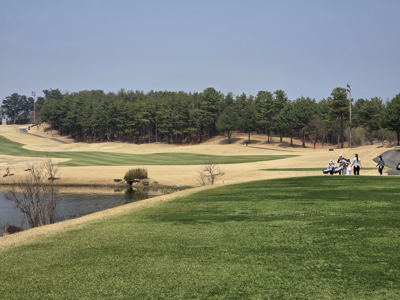 그런데 러프 지역을 제외하고 티잉 그라운드와 그린, 페어웨이가 한여름처럼 초록 물결을 이루고 있는 것이 아닌가.