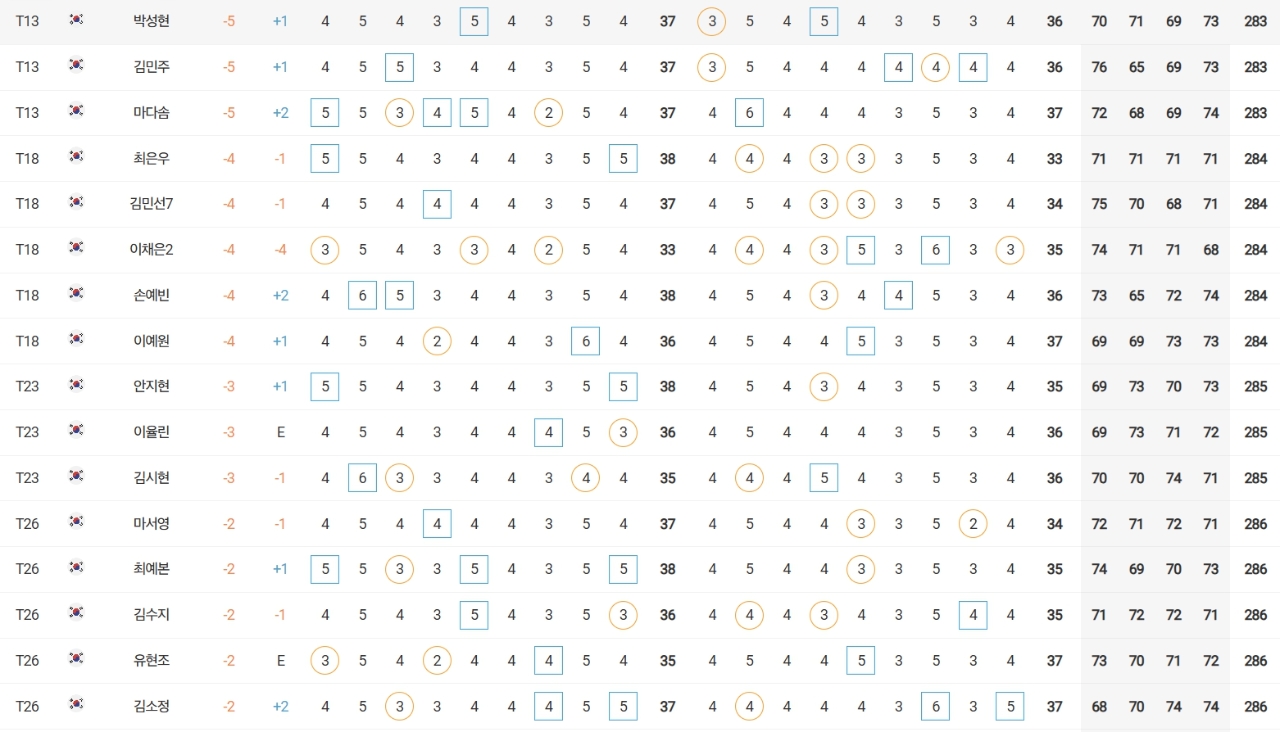 박성현(더 비스타CC)은 '무빙데이' 홀인원에도 불구하고 5언더파 283타를 쳐 공동 위에 만족해야 했다.