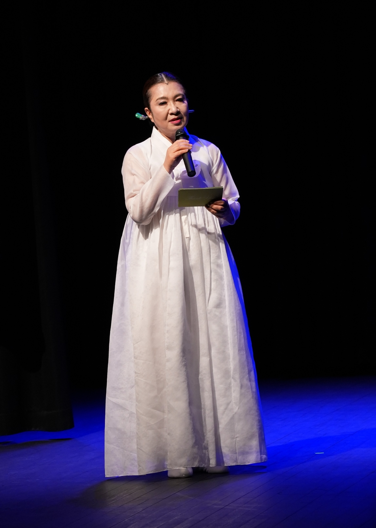 이미지 확대보기Ⅰ.모시는 문(門); 개회식 선언 및 인사말(박숙자-전통예술보존회 회장), 모시는 소리(김소현), 헌화(추모객 일동)와 시 낭독(이영달-시인) 및 묵념(전체), 삶의 기억과 기록; 추모사(주강홍-한국예총 진주지회장, 장석용-한국예술평론가협의회 회장), 추모영상(영상기획·편집 장은서)에 이어 약력이 영상으로 투사되었다. 정혜윤 선생 1주기를 위해 총연출(김유미)은 무대감독(김기웅), 조명(정병훈), 영상·사진촬영(탑커뮤니케이션), 프로그램디자인(황유진), 붓글씨(서치)등 서울과 진주의 제작진들과 함께 선생님을 기리는 모든 이들의 마음을 담아내는데 집중했다.