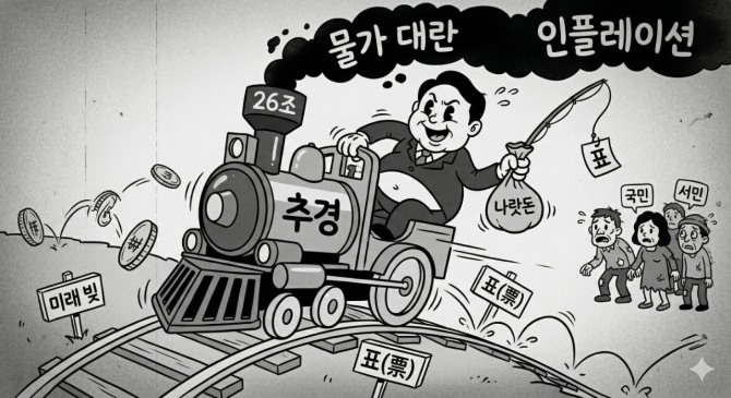 한국 경제가 사면초가의 위기 속에서도 선거용 추경에만 몰두하는 모습은 무책임의 극치다. 표심을 향한 정치적 욕망이 국가 재정이라는 마지막 보루를 무너뜨린다면, 그 대가는 고스란히 가난한 서민과 미래 세대의 고혈(膏血)로 돌아올 것이다. 정치권은 지금이라도 망국적인 재정 폭주를 멈춰야 한다.