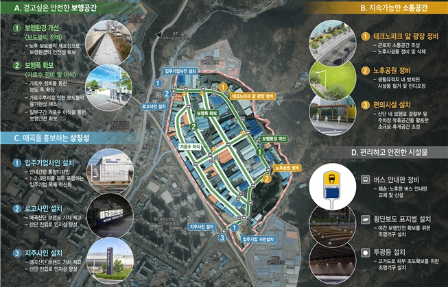 주요 내용은 △노후도로 정비 △보행 친화형 보도 조성 △가로수 정비 △안내판 개선 △근로자 편의시설 확충 등이다.