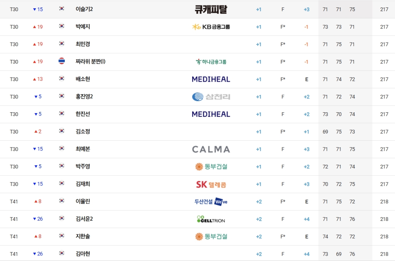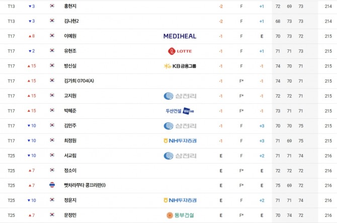 팬들을 몰고 다니는 박현경(메디힐)은 합계 4언더파 212타로 준우승만 8번한 최예림(휴온스), 이재윤(삼천리), 전예성(삼천리)과 함께 전날 공동 10위에서 공동 6위로 상승했다.