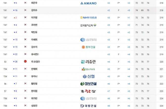 전날 무려 9타를 몰아쳐 코스레코드를 갈아치운 김민선7(대방건설)은 타수를 잃으며 순위가 밀려났다.