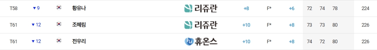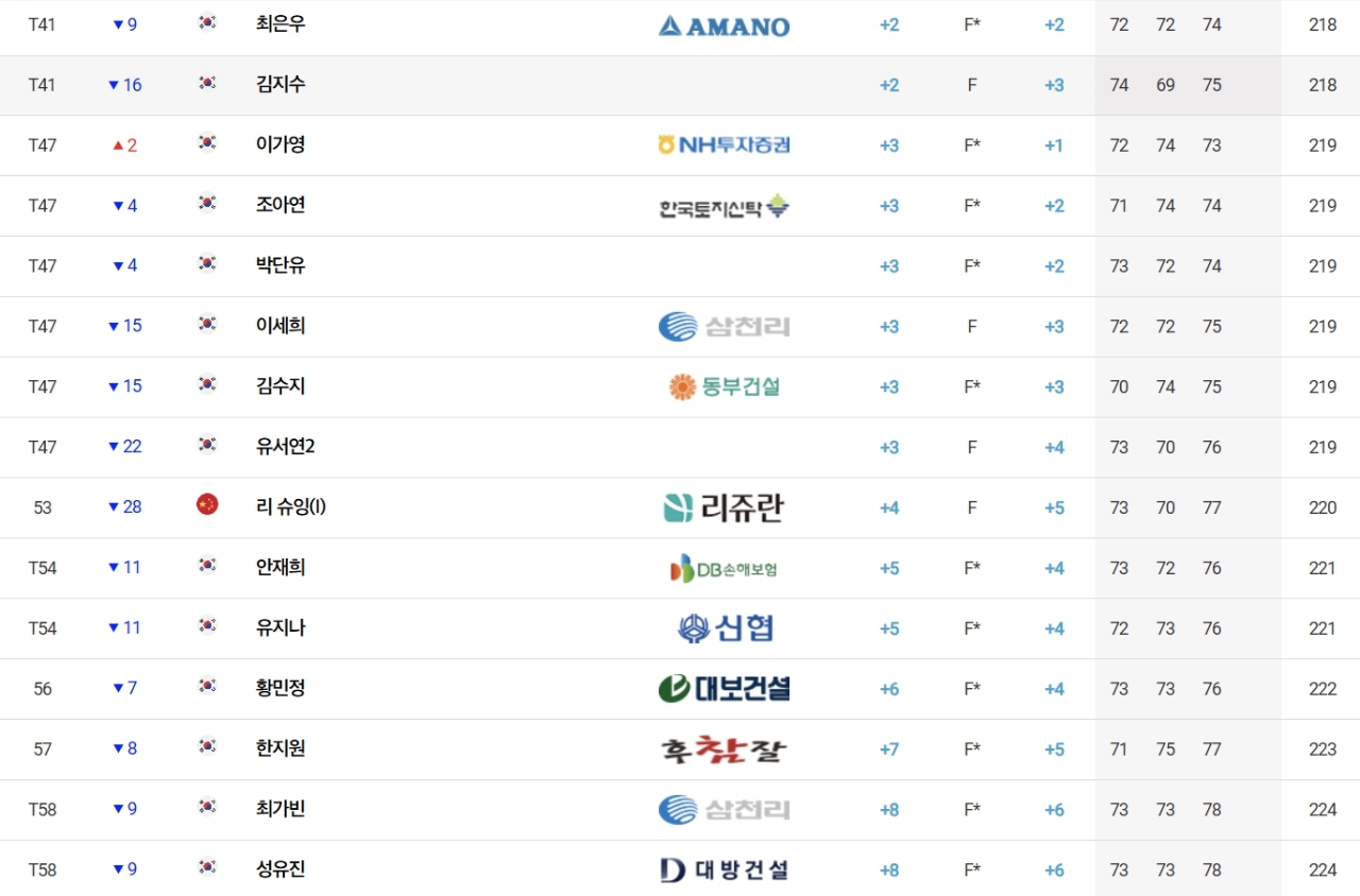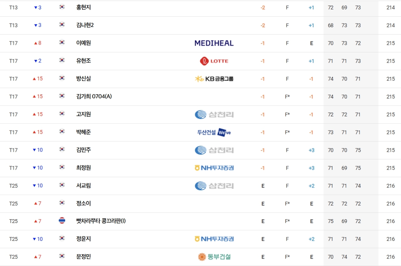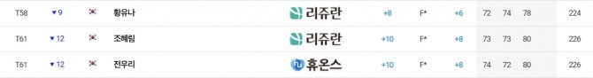 '디펜딩 챔피언' 김민주(대방건설)는 합계 1언더파 215타를 쳐 지난주 더 시에나 오픈 우승자 고지원(삼천리), 방신실(KB금융그룹), 이예원(메디힐), 유현조(롯데) 등과 공동 17위로 우승권에서 멀어졌다.
