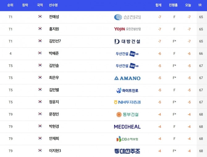 팬들을 몰고 다니는 박현경(메디힐)은 4언더파 68타로 장수연(동부건설), 조이안(CJ) 등과 함께 공동 9위, '두뇌 플레이'가 강점인 이예원(메디힐)은 3언더파 69타로 공동 19위에 랭크됐다.
