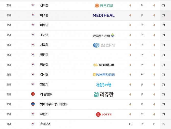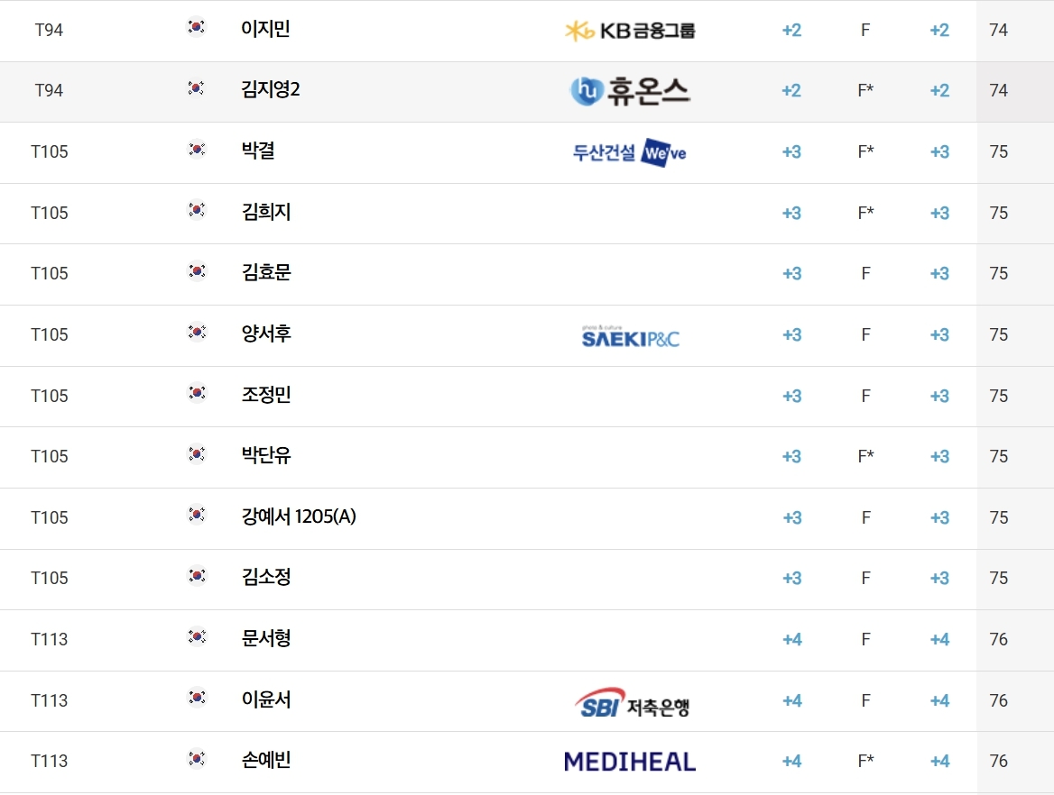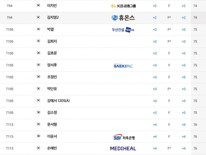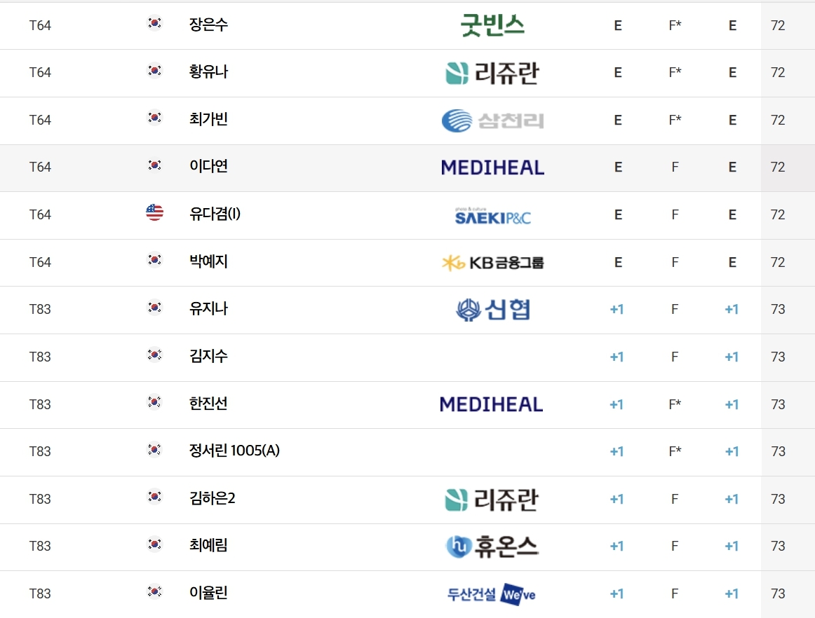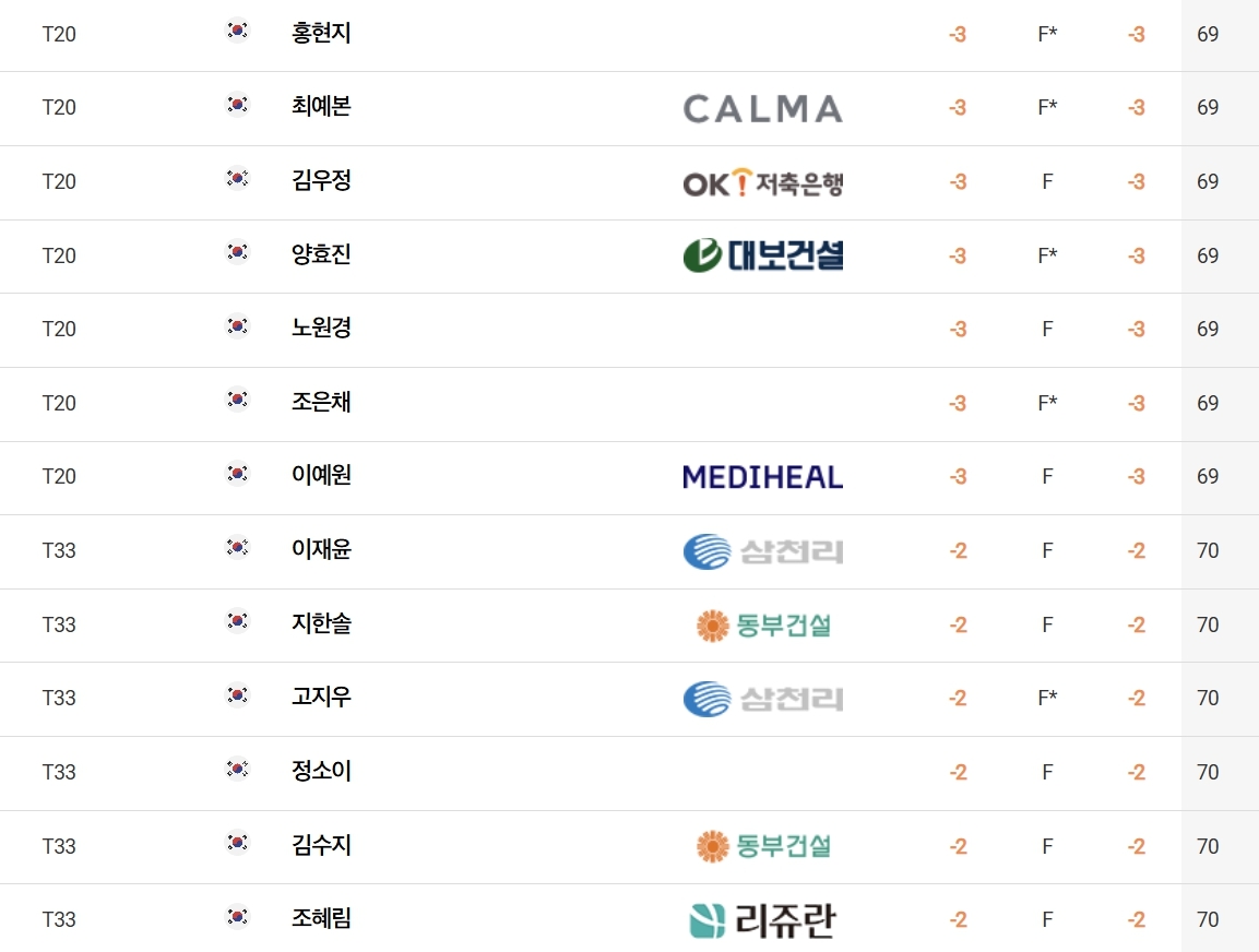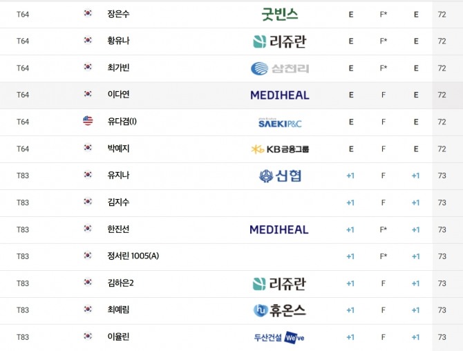 '베테랑' 장은수(굿빈스)는 이븐파 72타로 공동 64위, '손 부상' 성유진(대방건설)과 '목 부상' 한아름은 2오버파 74타, 공동 96위로 컷탈락을 걱정하게 됐다.