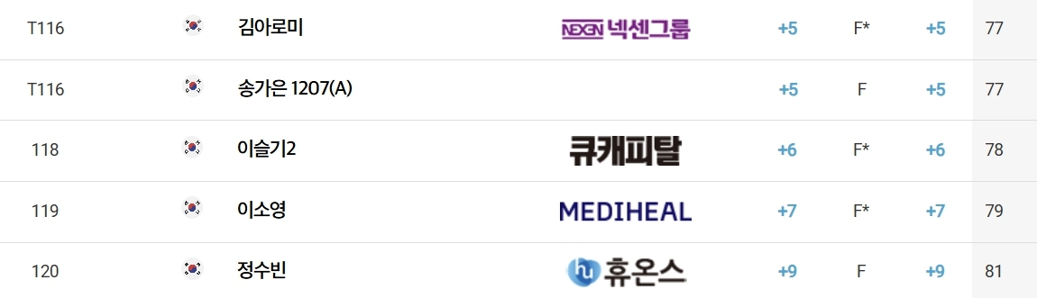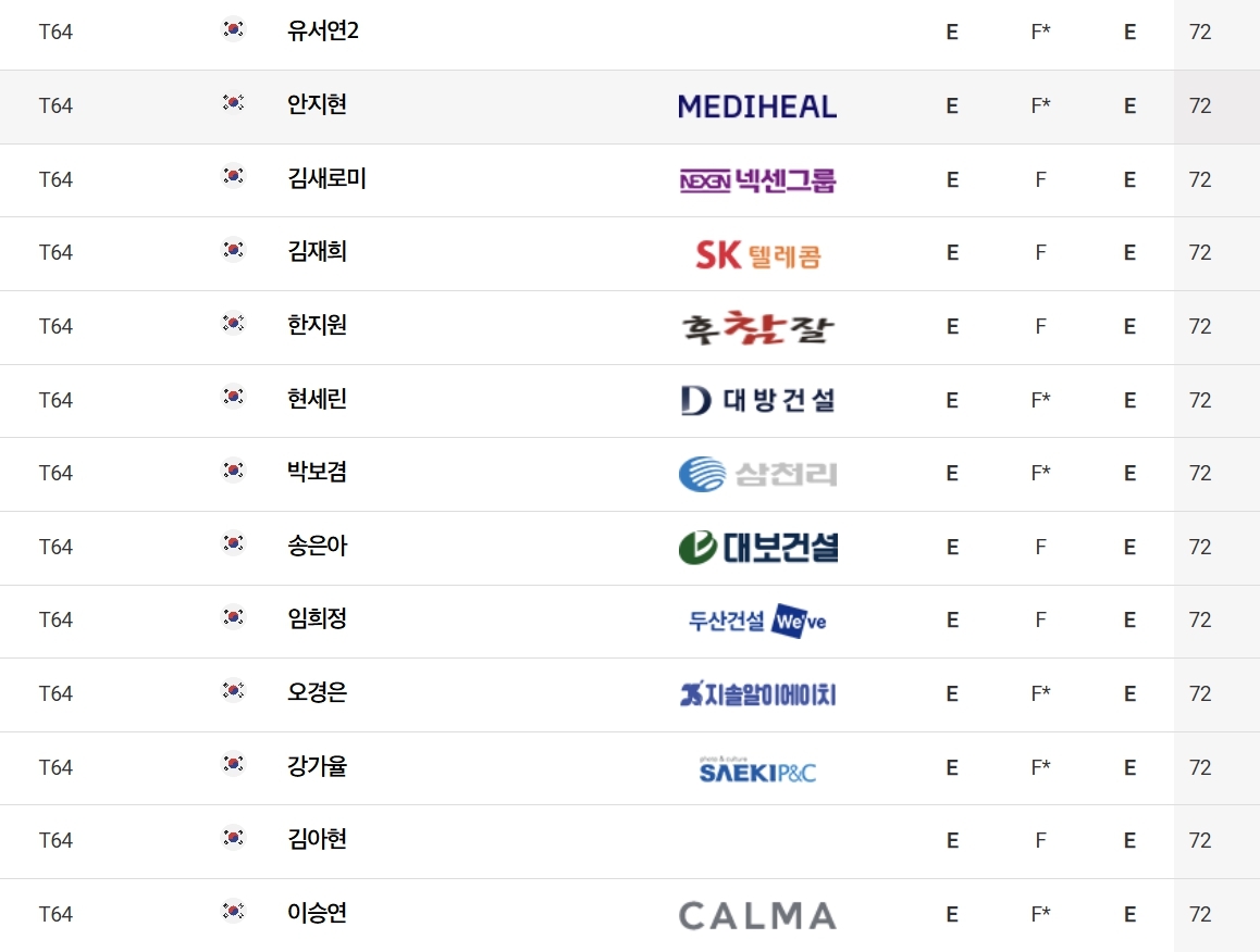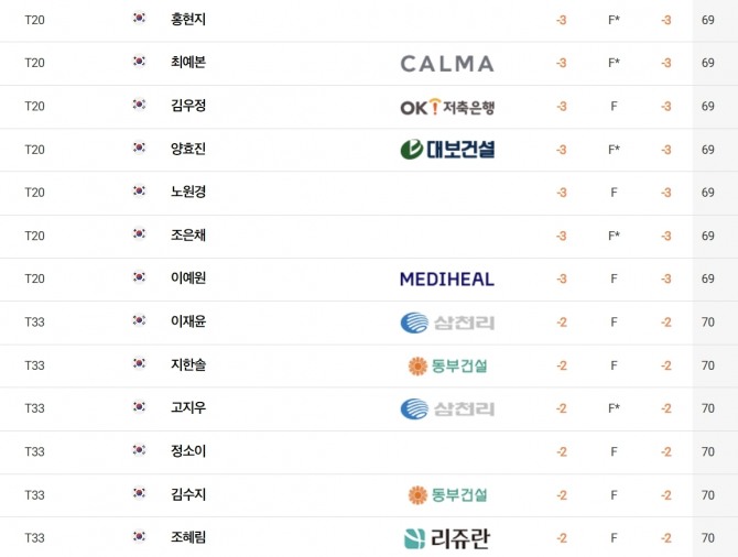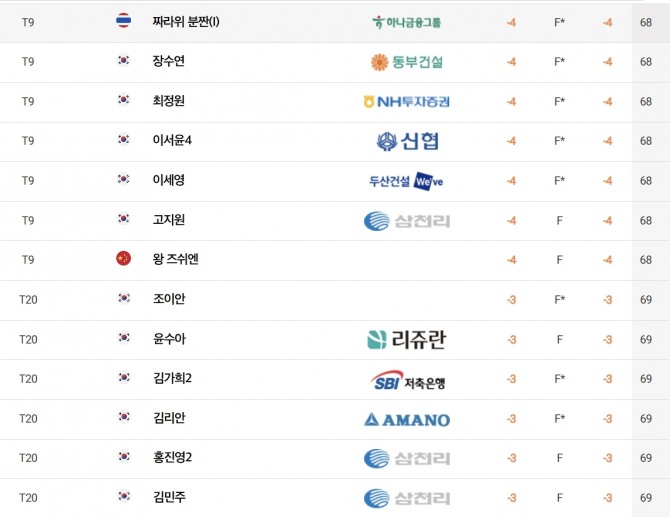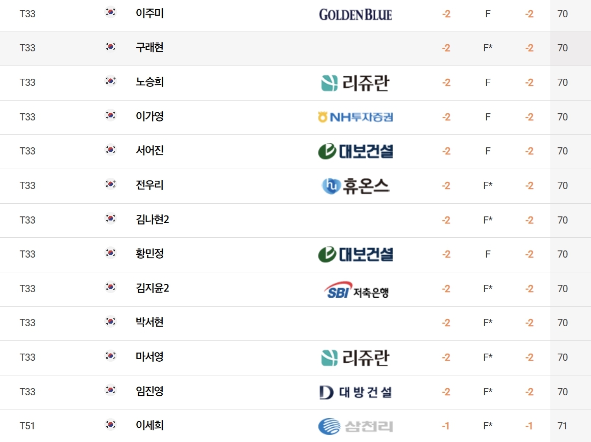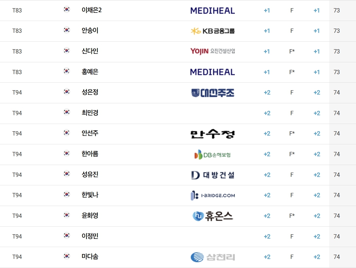 '베테랑' 장은수(굿빈스)는 이븐파 72타로 공동 64위, '손 부상' 성유진(대방건설)과 '목 부상' 한아름은 2오버파 74타, 공동 96위로 컷탈락을 걱정하게 됐다.