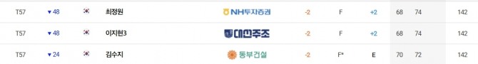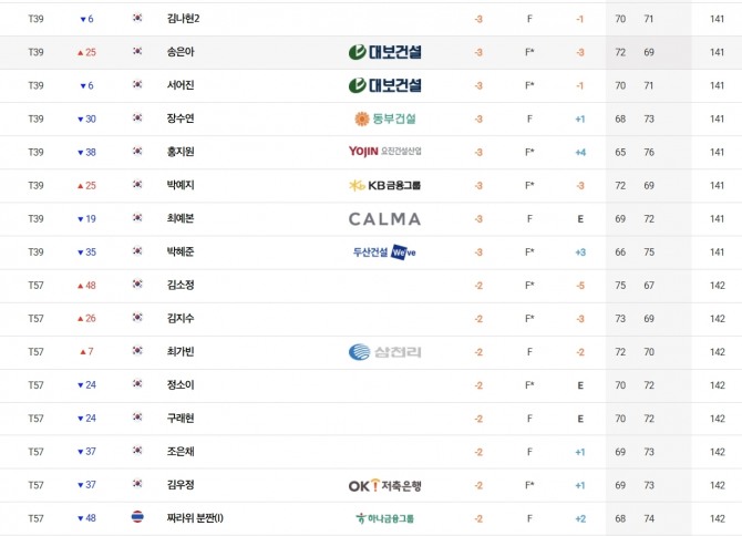 이날 컷 탈락 기준 타수는 합계 2언더파 142타였다.