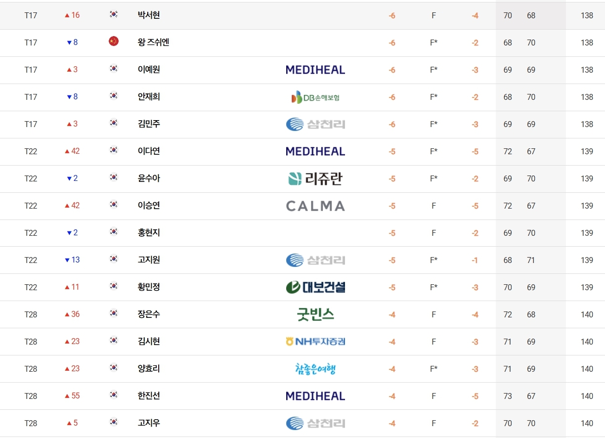 팬들을 몰고 다니는 박현경(메디힐)은 합계 7언더파 137타를 쳐 '루키' 이서윤4(신협) 등과 공동 11위, 스마트한 플레이가 강점인 통산 9승의 이예원(메디힐)은 합계 6언더파 138타로 '루키' 안재희(DB손해보험) 등과 공동 17위에 올랐다.