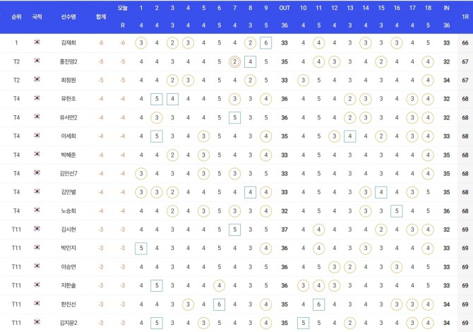 김재희(SK텔레콤)는 버디 7개, 보기 1개로 6언더파 66타를 쳐 프로 8년 차로 아직 우승이 없는 홍진영2(삼천리)와 '루키' 최정원(NH투자증권)을 1타 차로 따돌리고 단독 선두에 나섰디.