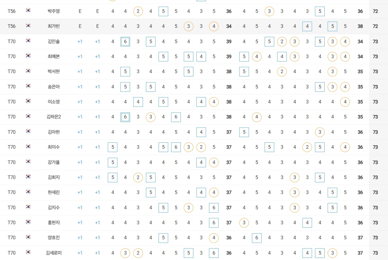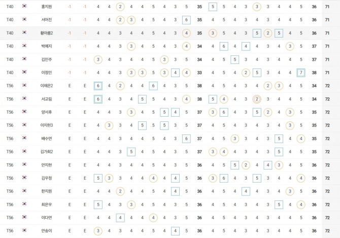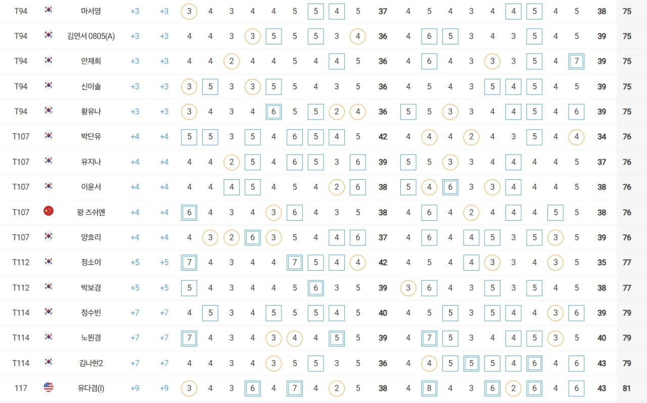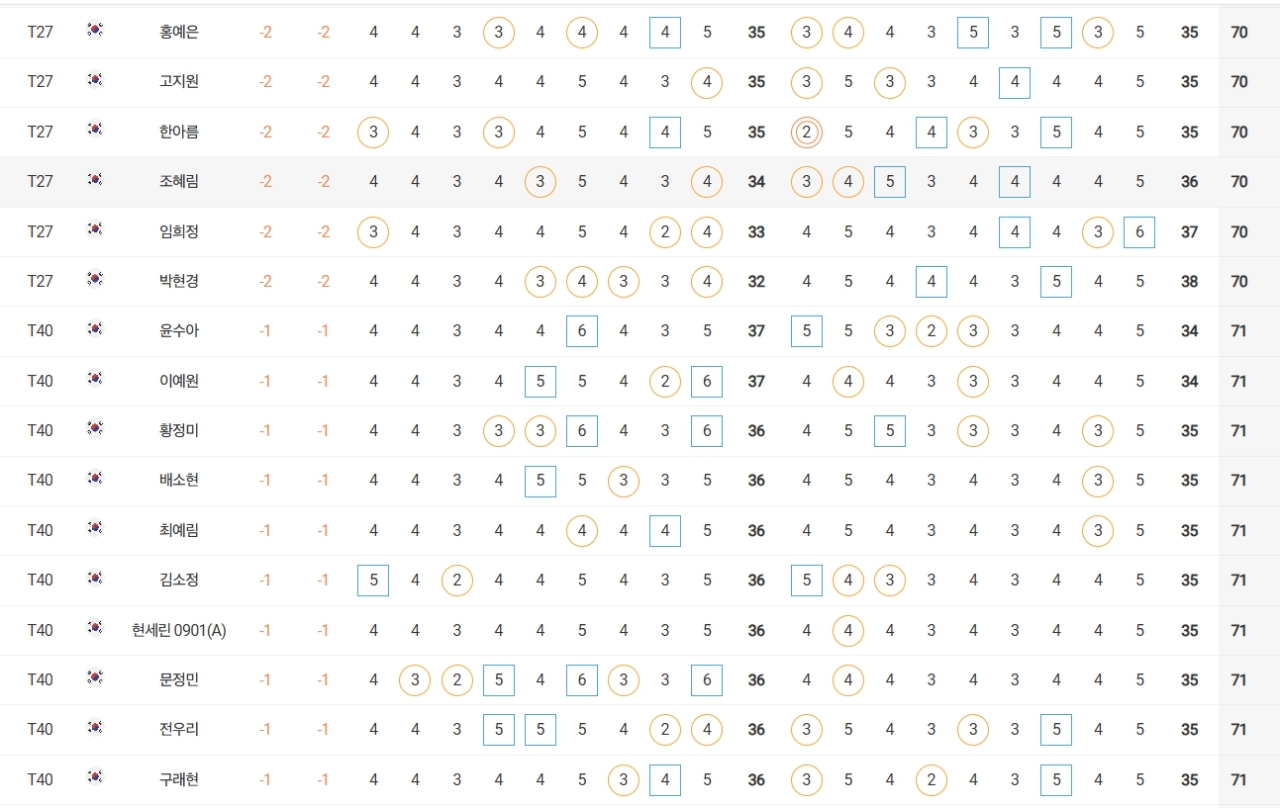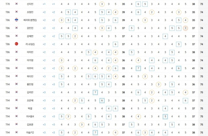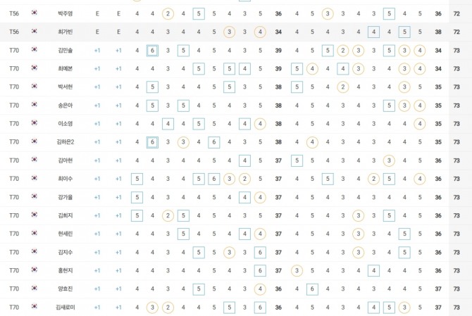 성유진(대방건설)은 2언더파 70타로 방신실(KB금융그룹), 박현경(메디힐), 한아름(DB손해보험), 최민경 등과 공동 27위, 이예원(메디힐)은 1언더파 71타로 문정민(동부건설), 최예림(휴온스) 등과 공동 40위에 랭크됐다.