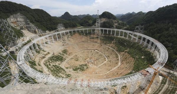 이미지 확대보기27일 중국 신화망에 따르면 중국 정부는 구이저우(貴州)성 첸난(黔南)주 핑탕(平塘)현 산림지대에 '톈옌'(天眼)이라는 별칭이 붙은 구경(口徑) 500m 구형 전파망원경을 건설 중이다. 특히 이 전파망원경은 외계 생명체의 흔적을 찾기 위해 1000광년 떨어진 외계에서 온 초미세 전파신호를 포착할 수 있도록 설계됐다.
