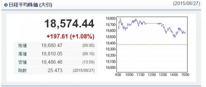 [일본 도쿄증시] 닛케이 225지수 197.61p 상승, 중국발 증시폭락 쇼크 탈출