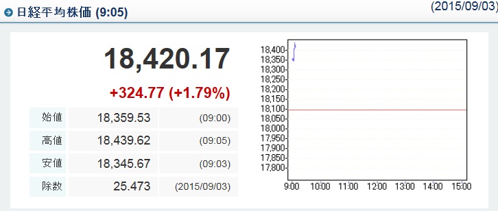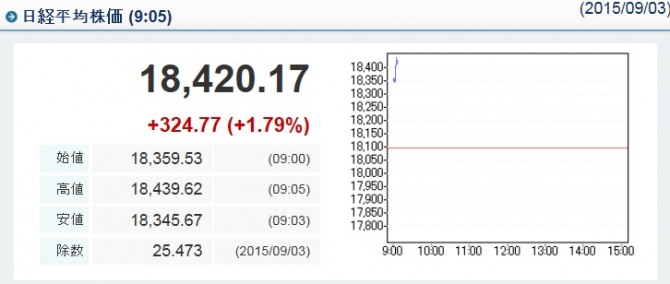 3일 일본 도쿄증권거래소에서 닛케이225지수는 1만8359.53로 개장했다.