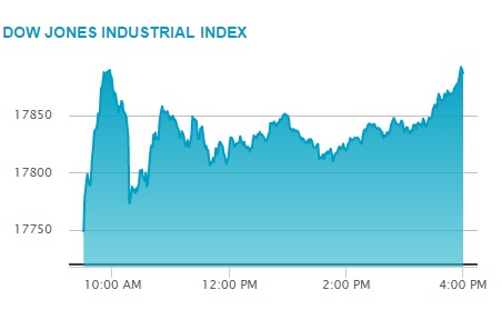 2일 아침에 마감한 뉴욕 증시 현지시간 1일자 거래에서 다우지수는 1만7888.35에 마감했다.
