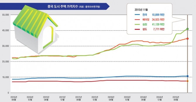 중국지수연구원(中国指数研究院)이 지난 11월 30일 발표한 중국 주요 도시 주택 평균가격 자료에 따르면 1㎡당 평균가격이 베이징 3만4925위안(元), 상하이 3만6143위안, 톈진 1만927위안, 선전 4만1139위안이다. 여전히 주택가격이 오르고 있는 도시들이다. 우리나라 원화(180원/1위안 적용)와 3.3㎡로 환산하면 베이징시는 2074만5000원, 선전시는 2443만6000원이다. 선전시는 지난해 대비 무려 34.75% 상승했다. 외국자본 공장이 들어서고 홍콩인들이 심천 주택을 많이 매입하였기 때문이다.