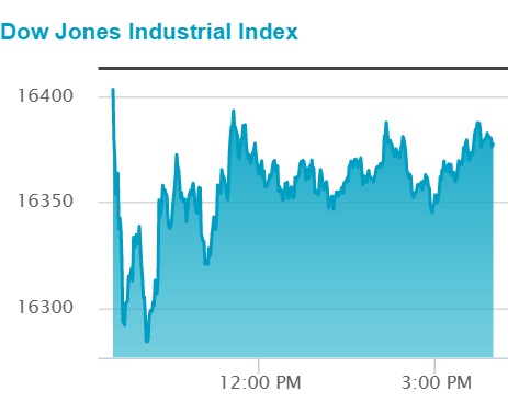 뉴욕증시에서 다우지수는 20일 오전 1만6391.58로 마감했다.