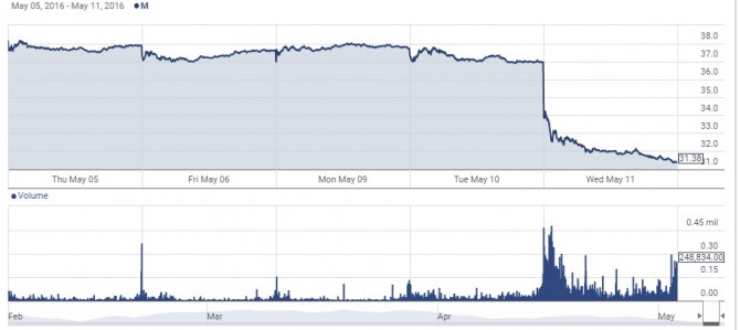 메이시스는 이날 2016년도 1분기의 조정 주당순이익(EPS)이 40센트를 기록했다.
