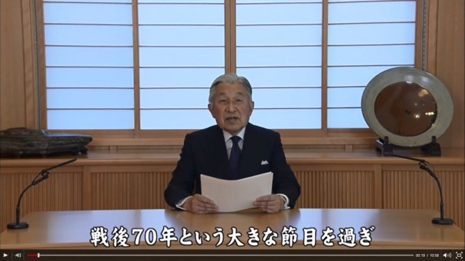 앞서 아키히토 일왕은 이날 일본 궁내청 홈페이지에 게재된 동영상을 통해 "점차적으로 진행되는 신체의 쇠약을 고려할 때 몸과 마음을 다해 상징으로서의 책무를 수행하는 것이 어려워지지 않을까 염려하고 있다"고 밝혔다.