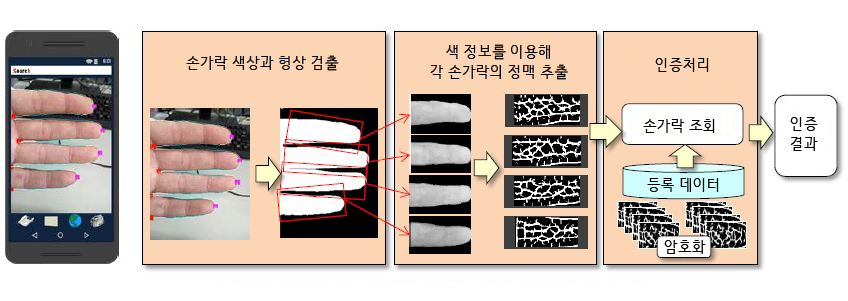 히타치 관계자는 “스마트폰 카메라로 손가락 사진을 컬러로 촬영한 후 피부의 평균색과 비교해 본인의 정맥인지를 확인하는 기술”이라며 “정맥을 덮는 피부는 약한 빨강색에 푸른빛이 돈다”고 말했다.